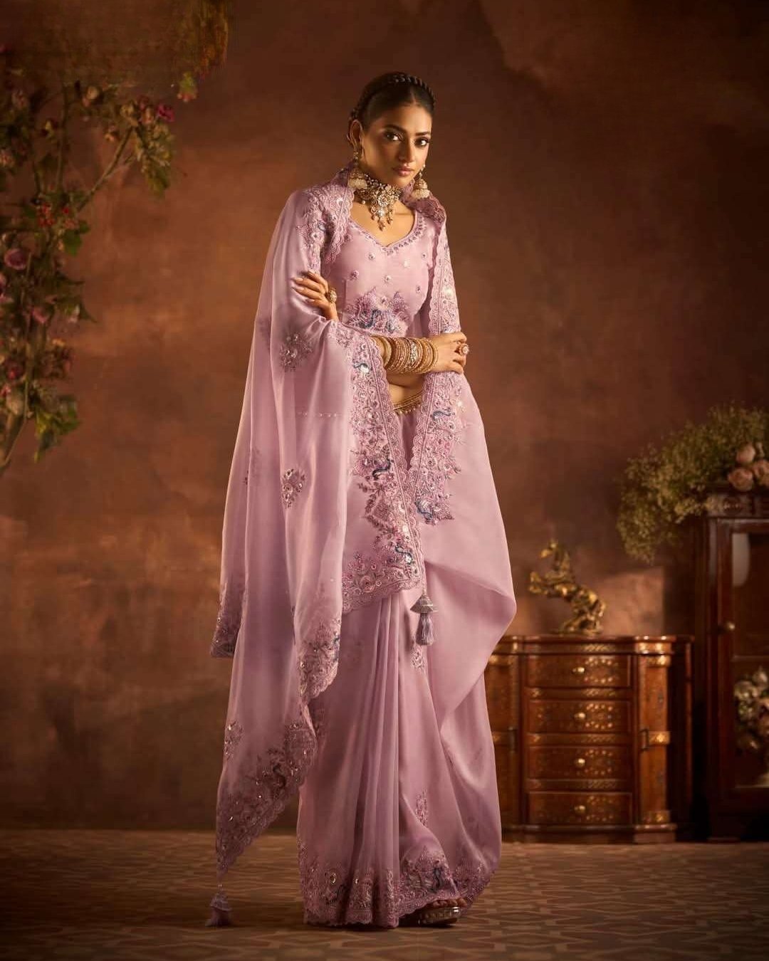 Saree : Premium Organza silk Embellished With Beautiful ,Embroidery,Sequins Work