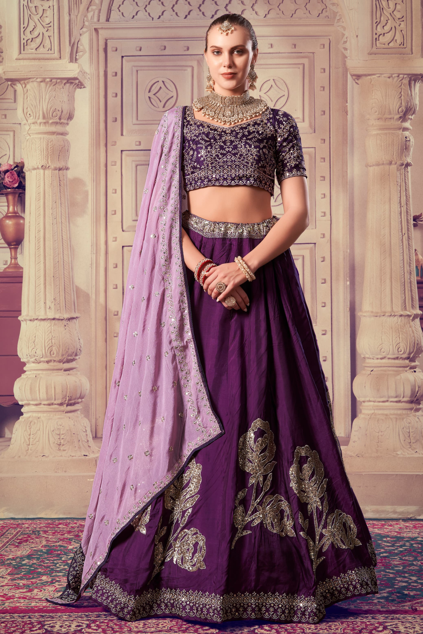 Purple Designer Embroidered Bridal Lehenga choli Set