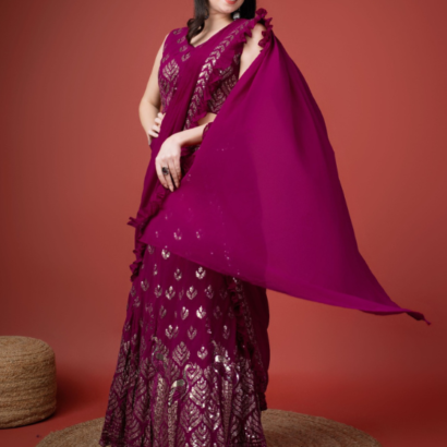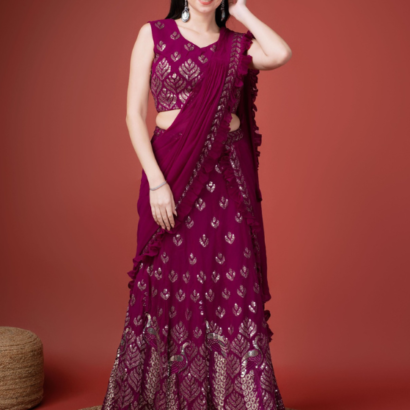 Be the first to review “Purple Embroidered Ready Made Saree”