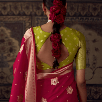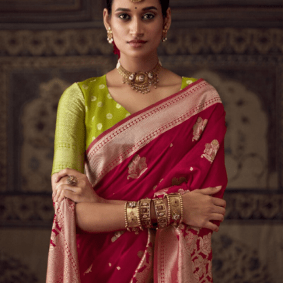 Fabric Detail : Banarasi Crepe Georgette Saree Features All-Over Zari Weaving