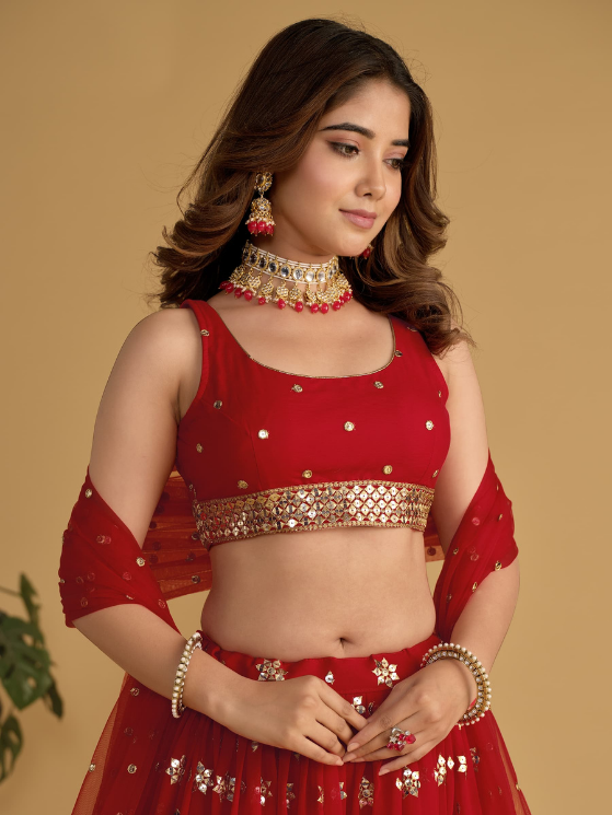 Be the first to review “Red Sequins Zari Embroidered Lehenga Choli”