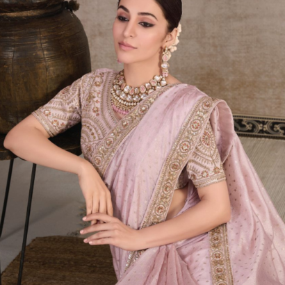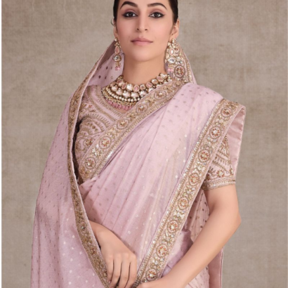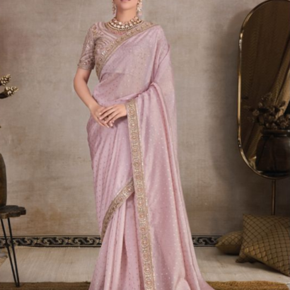 Rose Pink Colour Heavy Embroidery Organza Saree