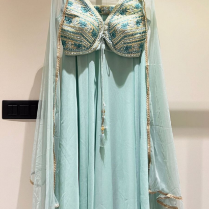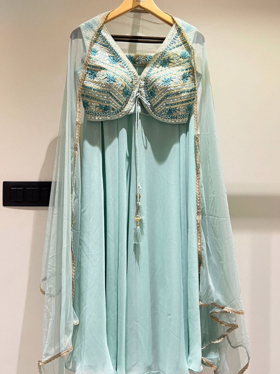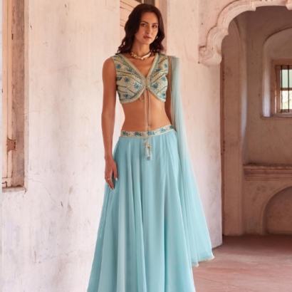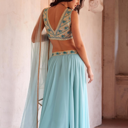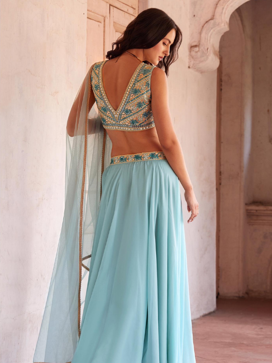 Sky Blue Designer Crop Top Style Lehenga Choli Indo western