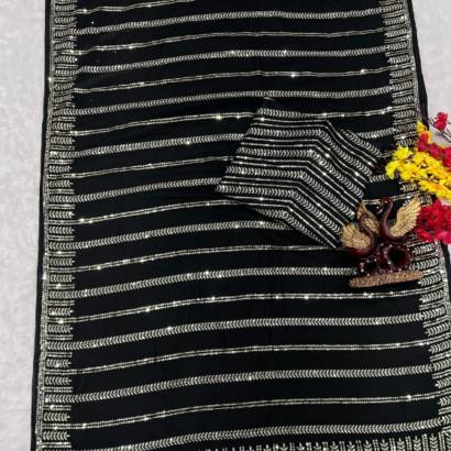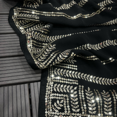 Soft Georgette C Pallu Sequence Embroidery Work Saree