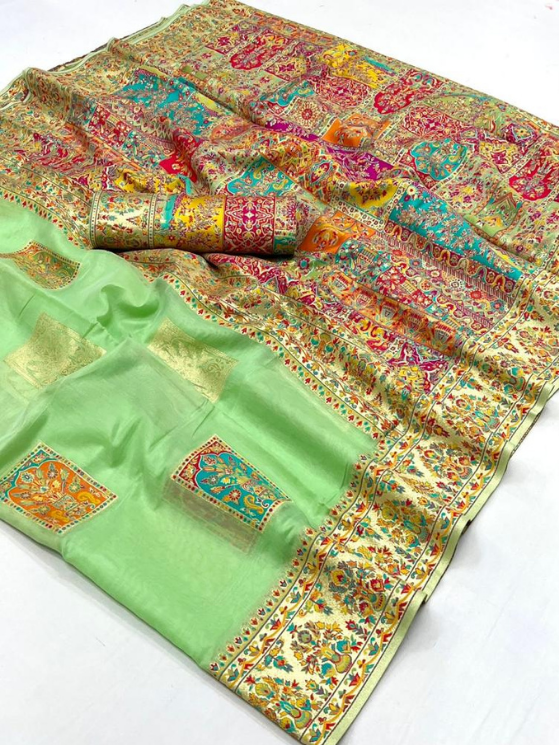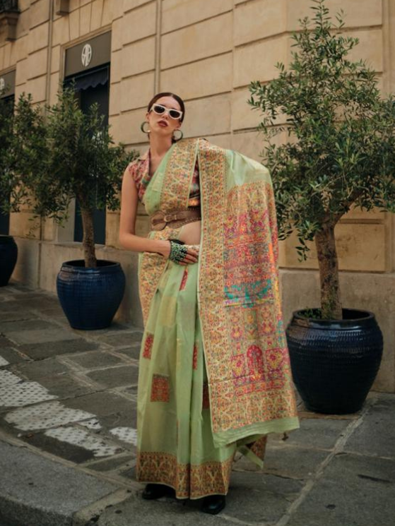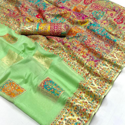 Teal Green Modal Silk – Kashmiri Saree