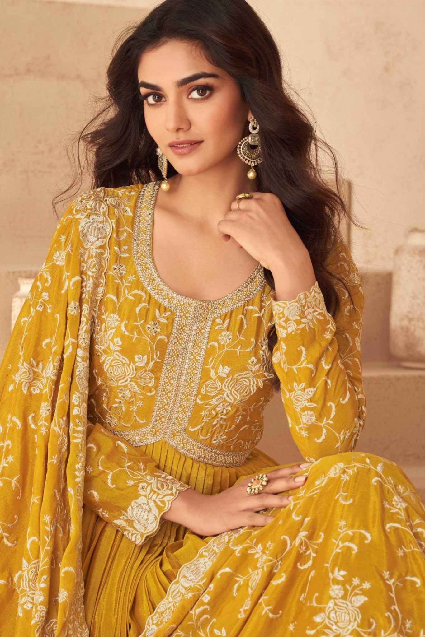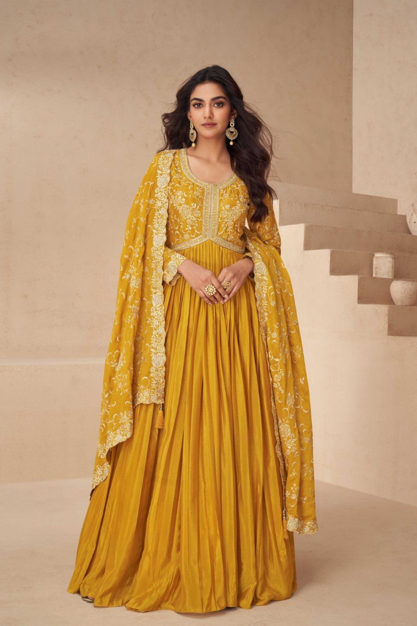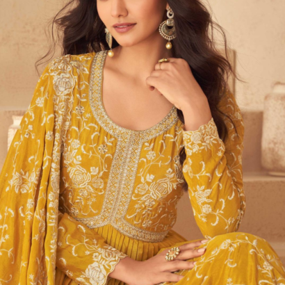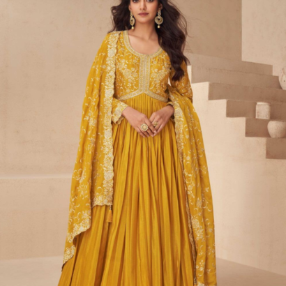 Yellow Chinon Silk Anarkali Suit with Dupatta