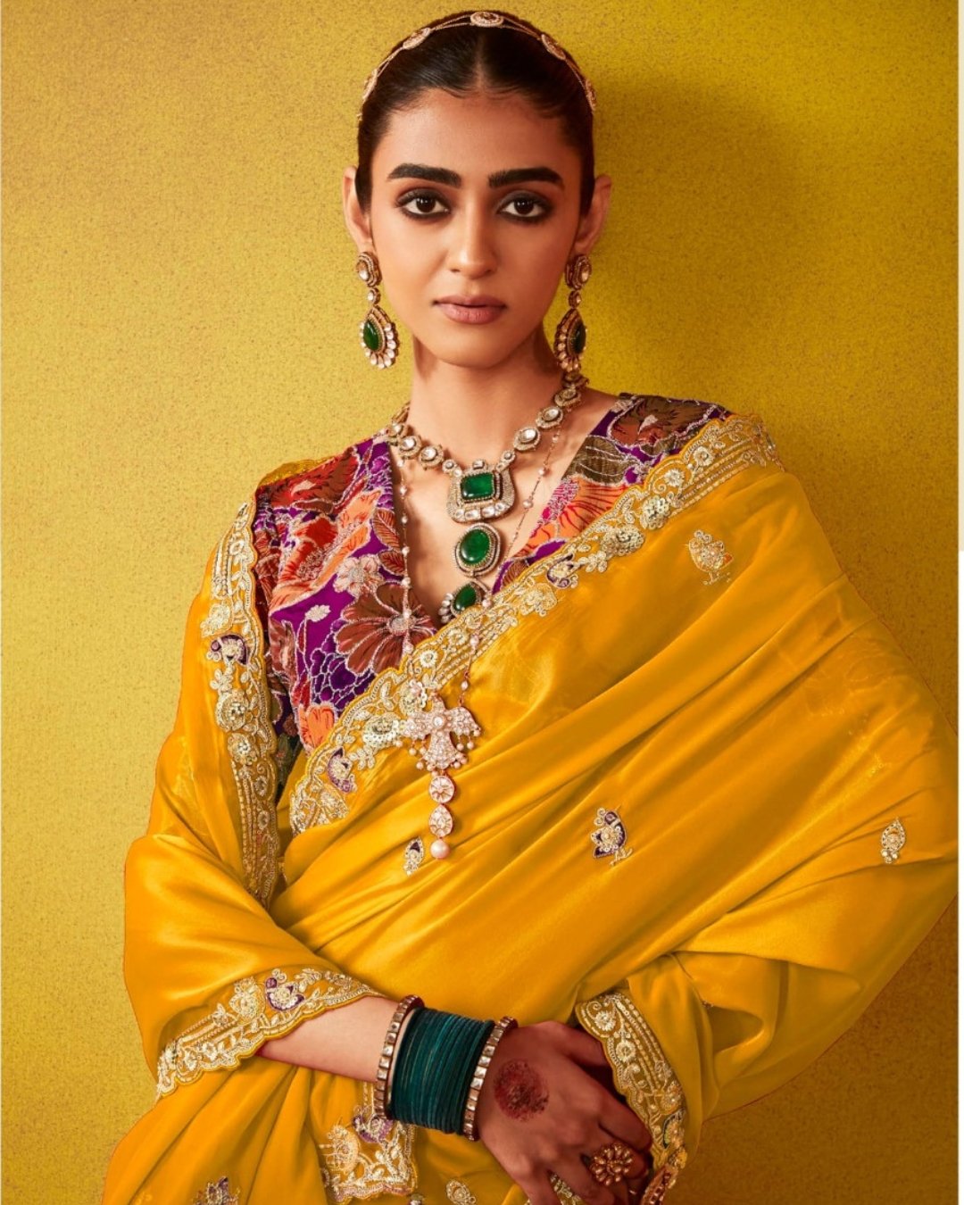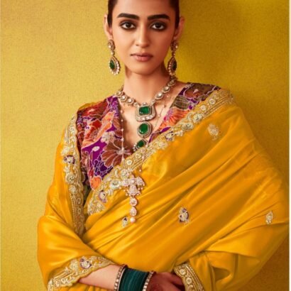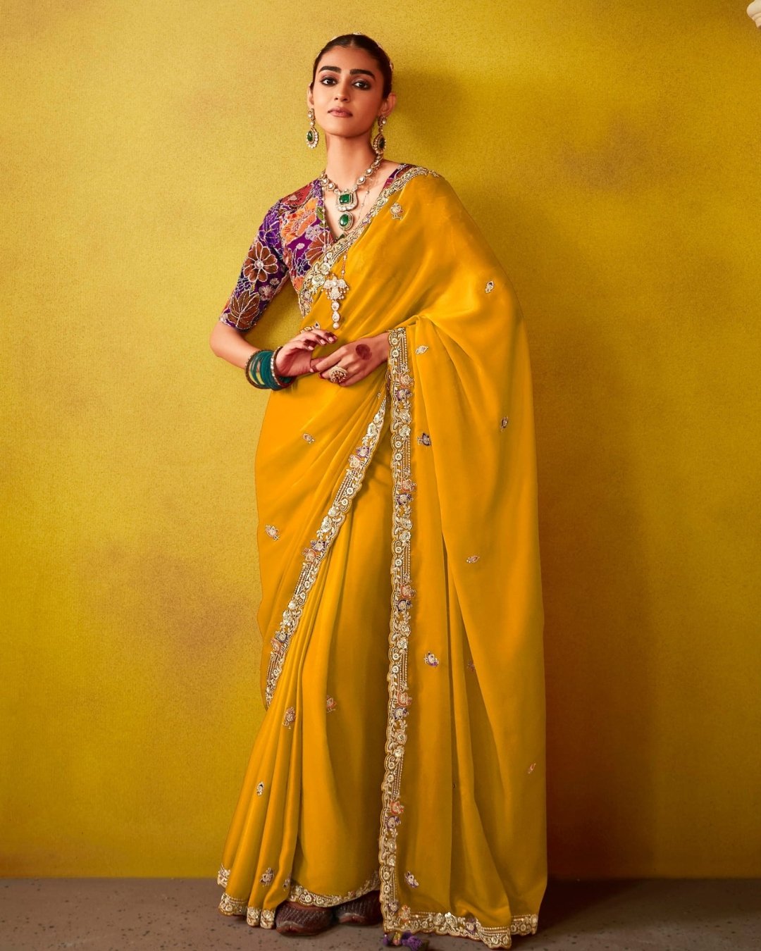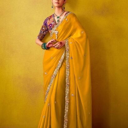 Be the first to review “Yellow Colour Georgette Saree Embroidered Wedding Wear With Blouse”