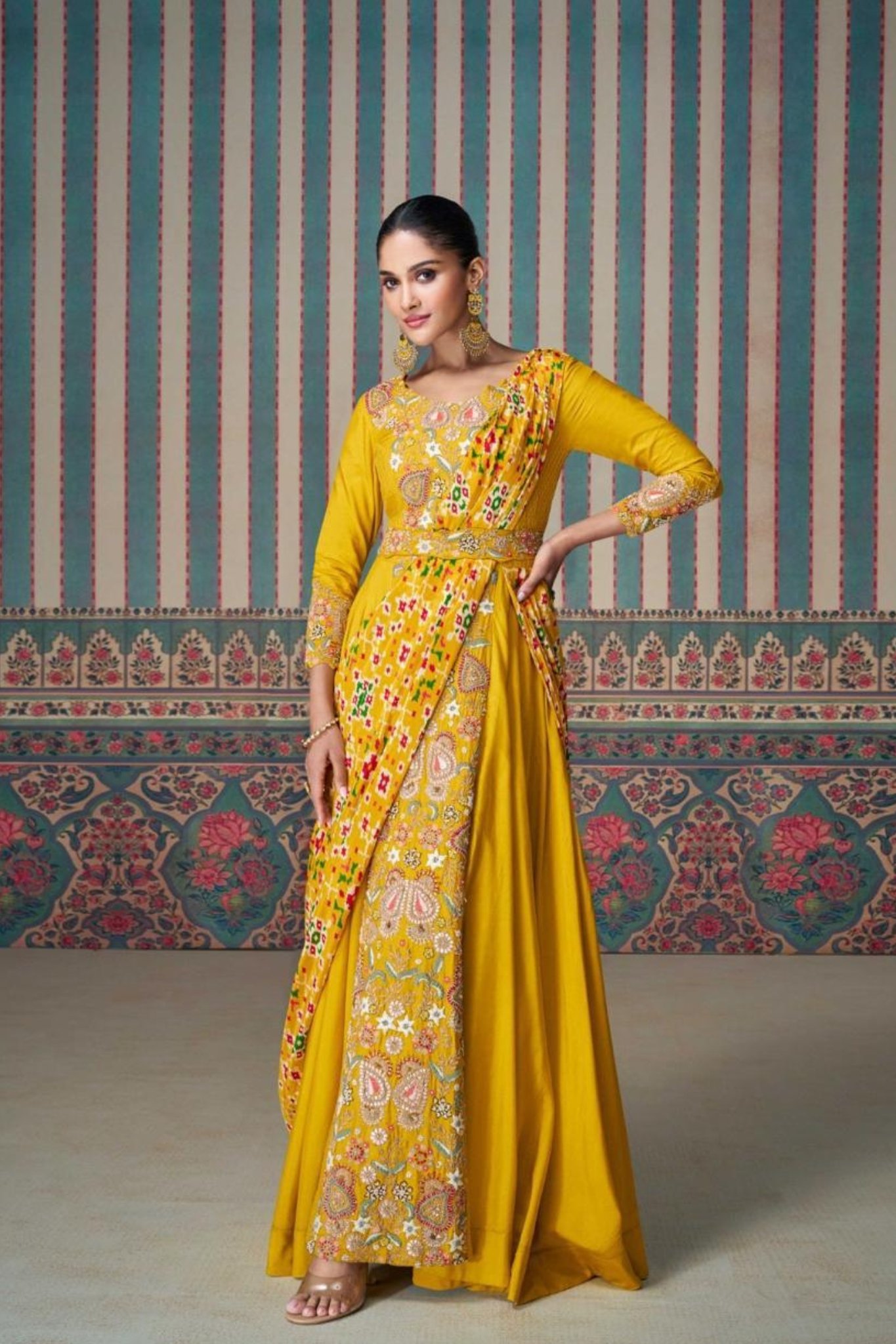 Yellow Colour Premium Real Chinon Indo western