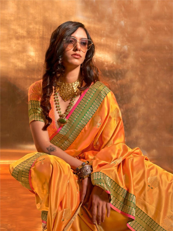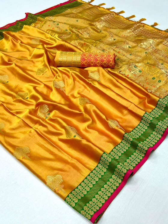 Yellow Pure Satin Weaving Silk Saree